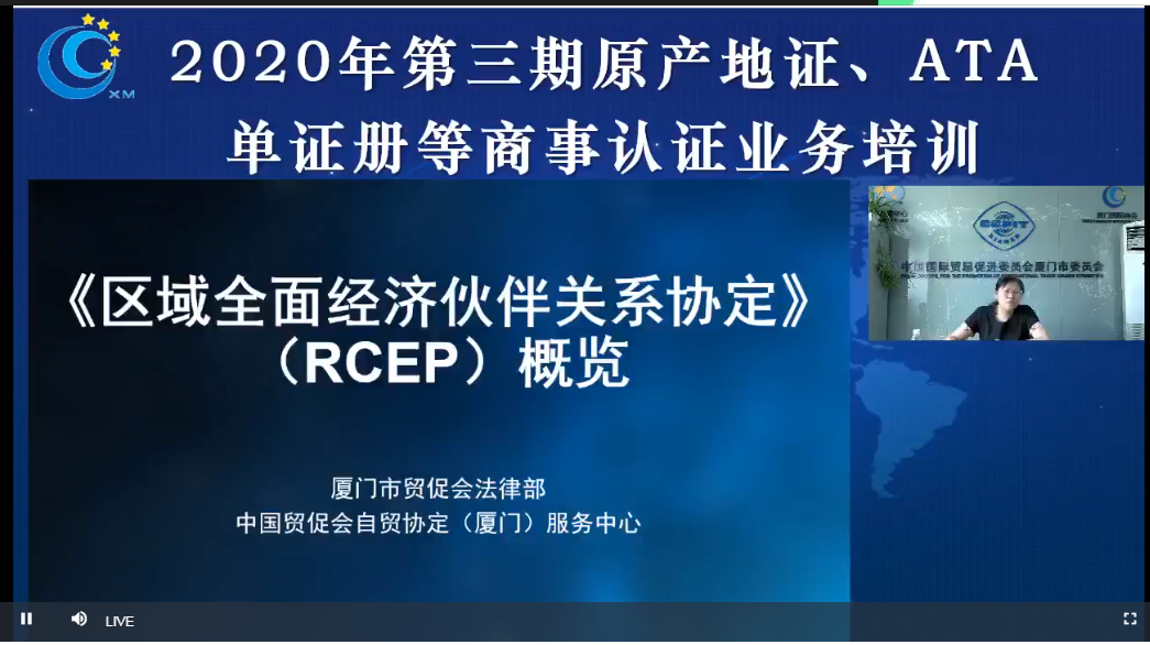 为向厦门企业宣传RCEP,扩大企业FTA利用率,进一步引导企业更好适应国际贸易新趋势、规避国际贸易风险,助推企业国际化经营,厦门市贸促会于11月27日举办线上业务培训,500多名企业代表在线参加。