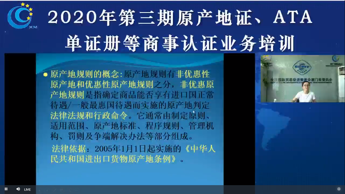培训课上,法律部王青部长向企业普及RCEP有关知识,引导企业关注RCEP协定与现有生效的自贸协定中原产地规则的差异,充分利用现有FTA项下的优惠关税更好地开拓成员国市场。本期培训还就一般原产地证明书、ATA单证册业务、商事证明书、代办领事认证和网上签证实务进行了讲解,进一步帮助我市外贸企业全面了解和掌握贸促会商事认证业务有关规定和要求,提升业务办理效率和办证质量。