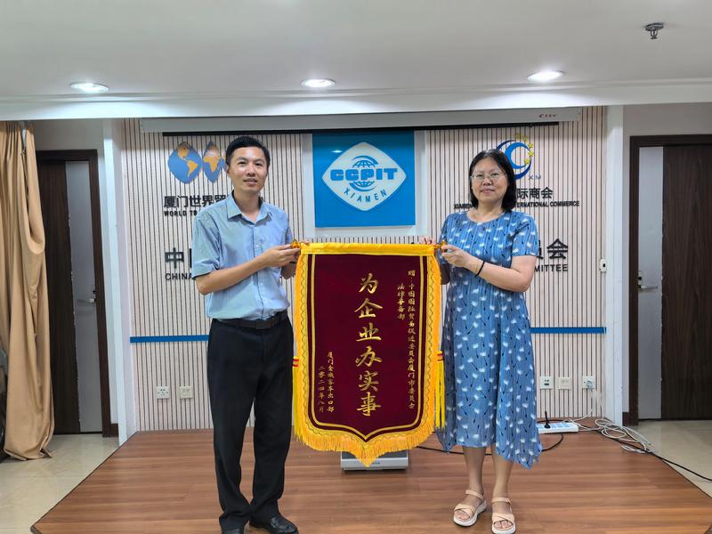 8月22日,厦门金旅客车出口部陈朝云经理专程送来锦旗,表示已顺利解决,非常感谢我会及时提供法律援助,为企业排忧解难。