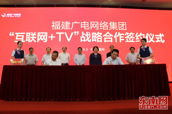 东南网5月9日讯(本网记者 郑思楠)今日,福建广电网络集团举行“互联网+TV”战略合作签约暨智慧云平台上线仪式,同时举办大型“公众体验月活动”。福建省人大常委会副主任刘群英、福建省政协副主席陈绍军等嘉宾及用户代表近300人出席了签约仪式。