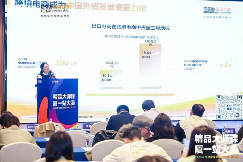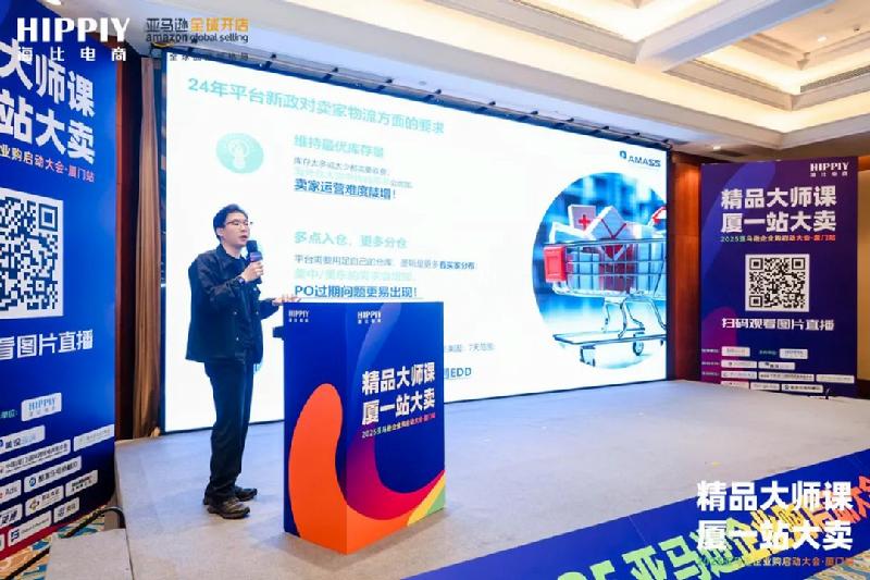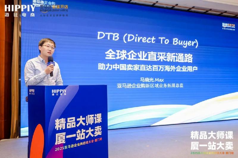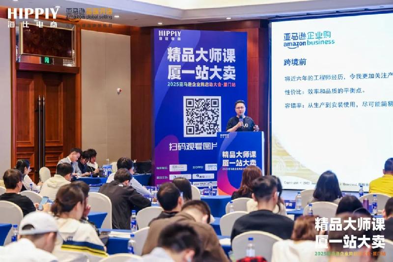 来自亚马逊的区域拓展高级经理 Cherry Zheng以及企业购新区域拓展总监马晓光先生,也先后为大家带来《2025年亚马逊扶持政策解析》和《赢取海外商采大单,企业购保驾护航》,他们从亚马逊官方的角度,为到场的卖家及企业拆解了品牌出海在平台政策上的福利以及企业发展的机会。