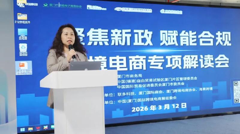 3月12日,由厦门市商务局、厦门自贸片区管委会、中跨展组委会等单位共同举办的“聚焦新政,赋能合规”跨境电商9810政策宣讲会在厦门成功举办。
