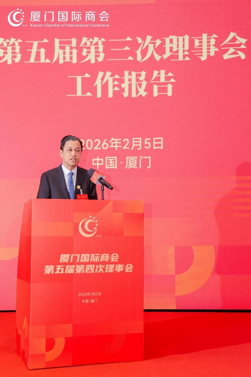同期举办厦门国际商会第五届第四次理事会,厦门市贸促会、厦门国际商会向参会企业介绍了2025年度工作亮点及2026年度工作计划。