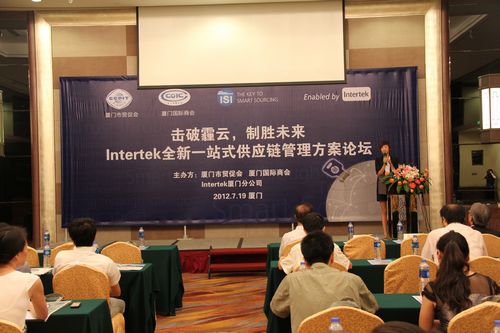 7月19日,厦门市贸促会/厦门国际商会与Intertek厦门分公司在海景千禧酒店共同举办“全新一站式供应链管理方案论坛”,刘长根副会长到会致辞,100多位企业代表出席论坛。
