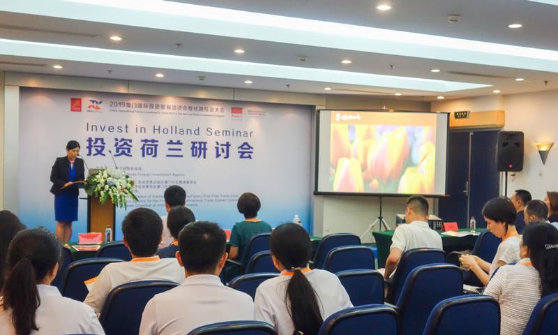 2019年9月8日,由荷兰外商投资局主办,自贸区厦门片区管委会、厦门市贸促会、厦门国际商会协办的投资荷兰研讨会在厦门国际会展中心举行。 荷兰外商投资局中国事务首席代表Roland Brouwer先生致欢迎辞,他表示,荷兰是中国在欧洲地区重要的经贸伙伴,希望有更多中国企业通过此次活动了解荷兰的投资环境、投资政策和商业机会;希望厦门市贸促会积极搭建平台,促进厦门和荷兰的贸易往来,发挥对外促进贸易的桥梁作用,进一步拓展两地的经贸交流和合作。