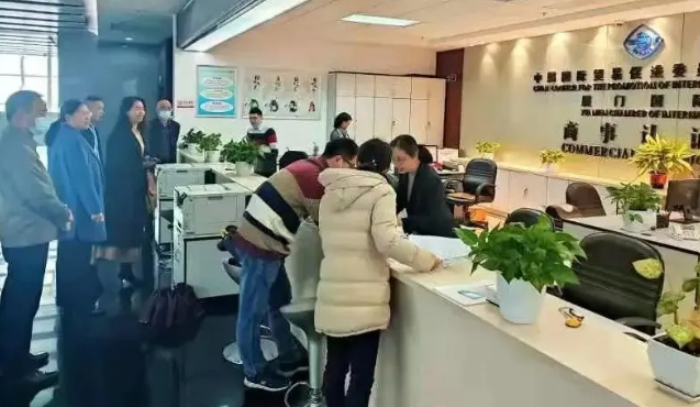 柯碧如会长一行听取了两个服务窗口负责人的简要汇报,对窗口工作人员饱满的精神风貌、热情的服务态度、过硬的业务能力给予了高度的认可和肯定,嘱咐大家在坚持服务好企业的同时,做好疫情防控工作,勉励全体工作人员在新的一年里,不断创新服务模式、提升服务质量,打造国际一流营商环境新高地,为我市对外经贸事业高质量发展作出应有的贡献。