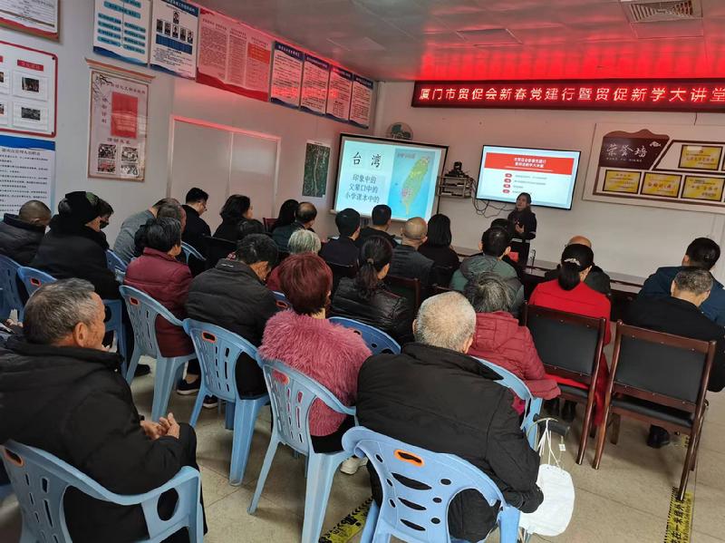 为进一步推进与新学村的挂钩帮扶工作,“贸促新学大讲堂”邀请到了厦门医学院马克思主义学院直属党支部书记、副教授谢银萍讲授《厦门在新时代国家统一进程中的独特优势和作用》。谢教授的课,她深入浅出地介绍了两岸关系及厦门特殊的地理位置,让在座的党员群众更加深入地理解厦门在国家统一进程中的独特作用。