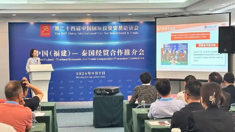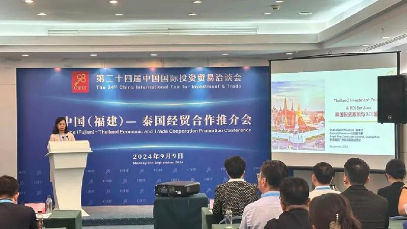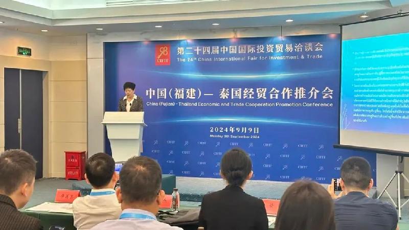 9月9日,以“投资链接世界”为年度主题的中国(福建)——泰国经贸合作推介会,在厦门国际会展中心举办,泰王国驻厦门总领事馆陈佩怡领事、厦门市贸促会、厦门国际商会黄安杰副会长,泰国投资促进委员会广州办事处刘美玲主任出席,会议由泰国投资促进委员会和福建省商务厅联合主办,福建省亚太经济贸易合作促进会、厦门市贸促会协办,吸引了60多家企业参会。