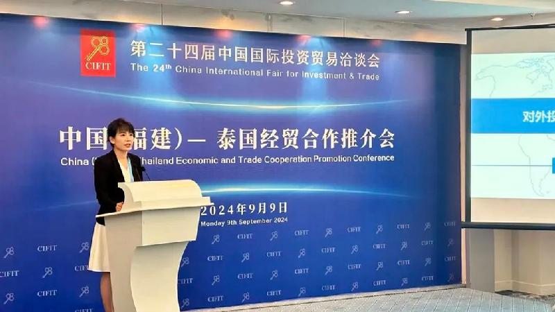 福建省商务厅二级巡视员卓荔芸在致辞中表示,福建与泰国的交往源远流长,近年来双方不断加强投资贸易、旅游、基础设施、产业园等传统领域的合作,积极推动数字经济、新能源汽车、科技创新等新领域合作取得积极进展。当前福建正全方位推进高质量发展奋力谱写中国式现代化的福建篇章,国际合作的空间更广阔,前景更加光明。希望通过这场中国一泰国投资机遇的推介会,能够推动双方更加紧密的合作。