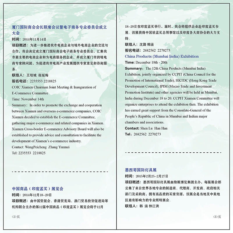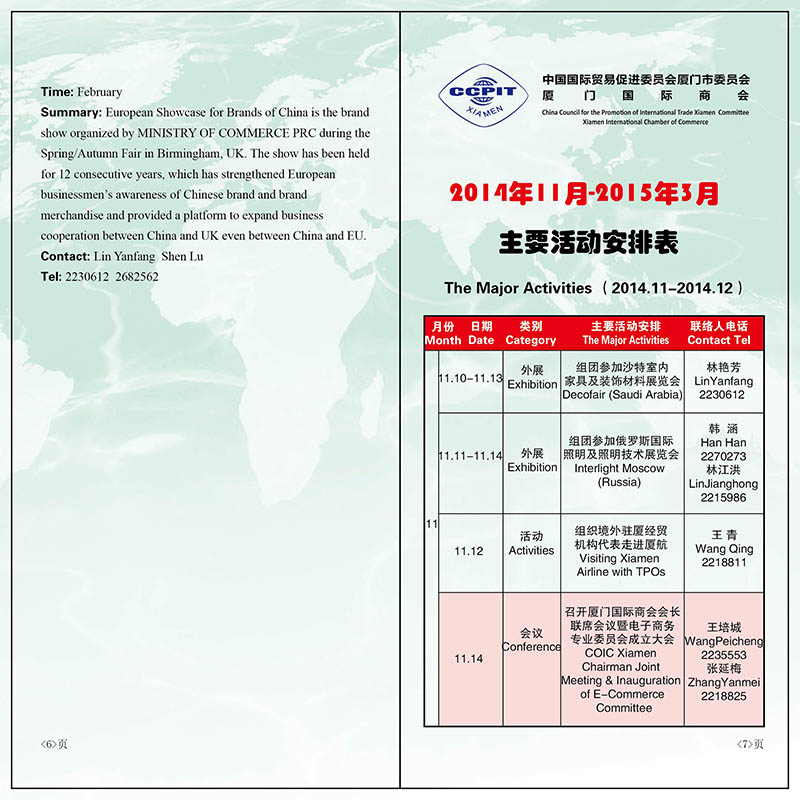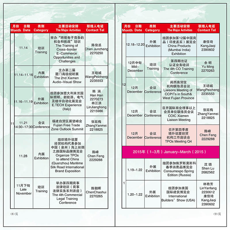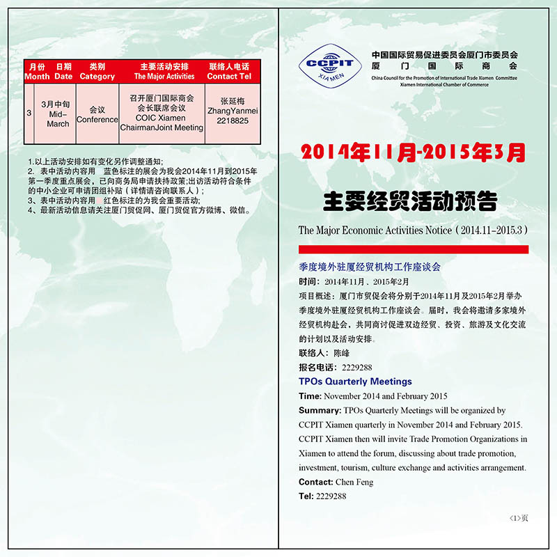 2014年厦门市贸促会、厦门国际商会工作计划表